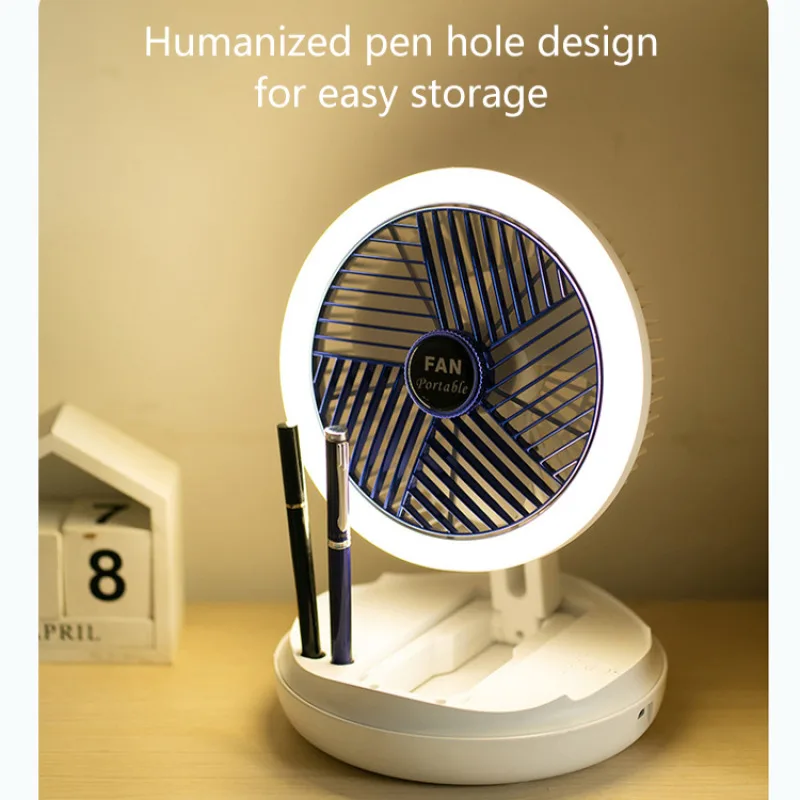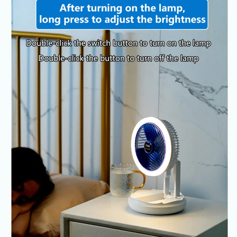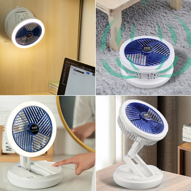 4 speed fan ideal for office and student dorm. Easy installation on wall or desk, available in white or blue with lights.